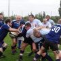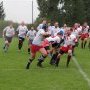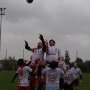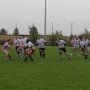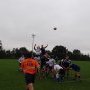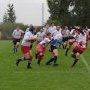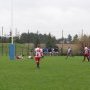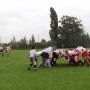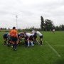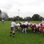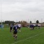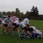 Nous jouons bien, mais n’arrivons pas à sortir de notre camp. Jeu au pied trop faible ou trop peu utilisé. Sinon les ballons sont partagés et nous combinons assez bien. Mais le mauvais temps ne pardonne pas : nous accumulons les mêlées dans notre camp.