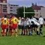 La pression Forézienne se fait plus forte : après une insistante période de domination, le premier centre lance le demi de mêlée pour l’essai de l’égalisation. 2-2