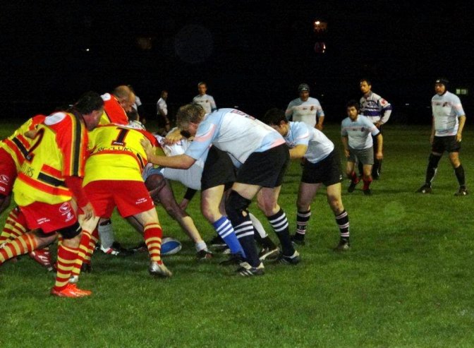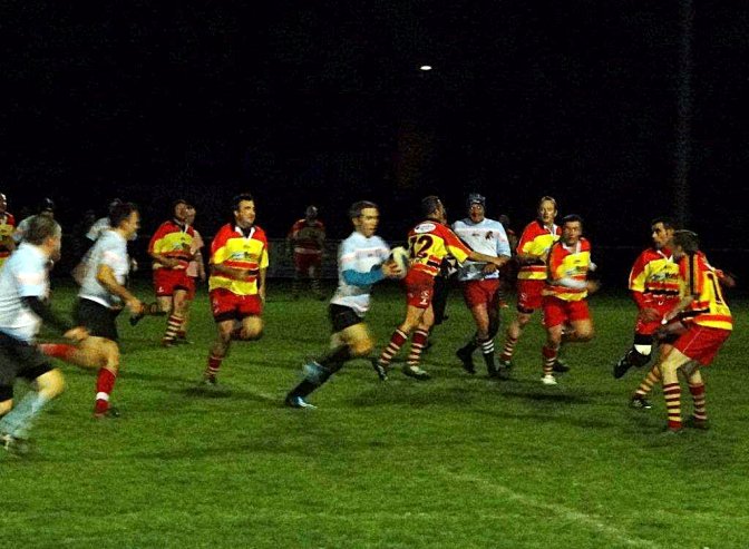 Souvent décevants en début de match, les Devils Oldies ont, cette fois, su démarrer du bon pied. Avec, dès la 3eme minute, un bel essai, collectivement bien amené : un coup dans le fermé, coté Hubert, un regroupement et une ouverture grand coté avec une belle intervention de LoloTeyss, puis Eamonn qui décale Tom pour le sprint jusqu’en terre promise. 0-1